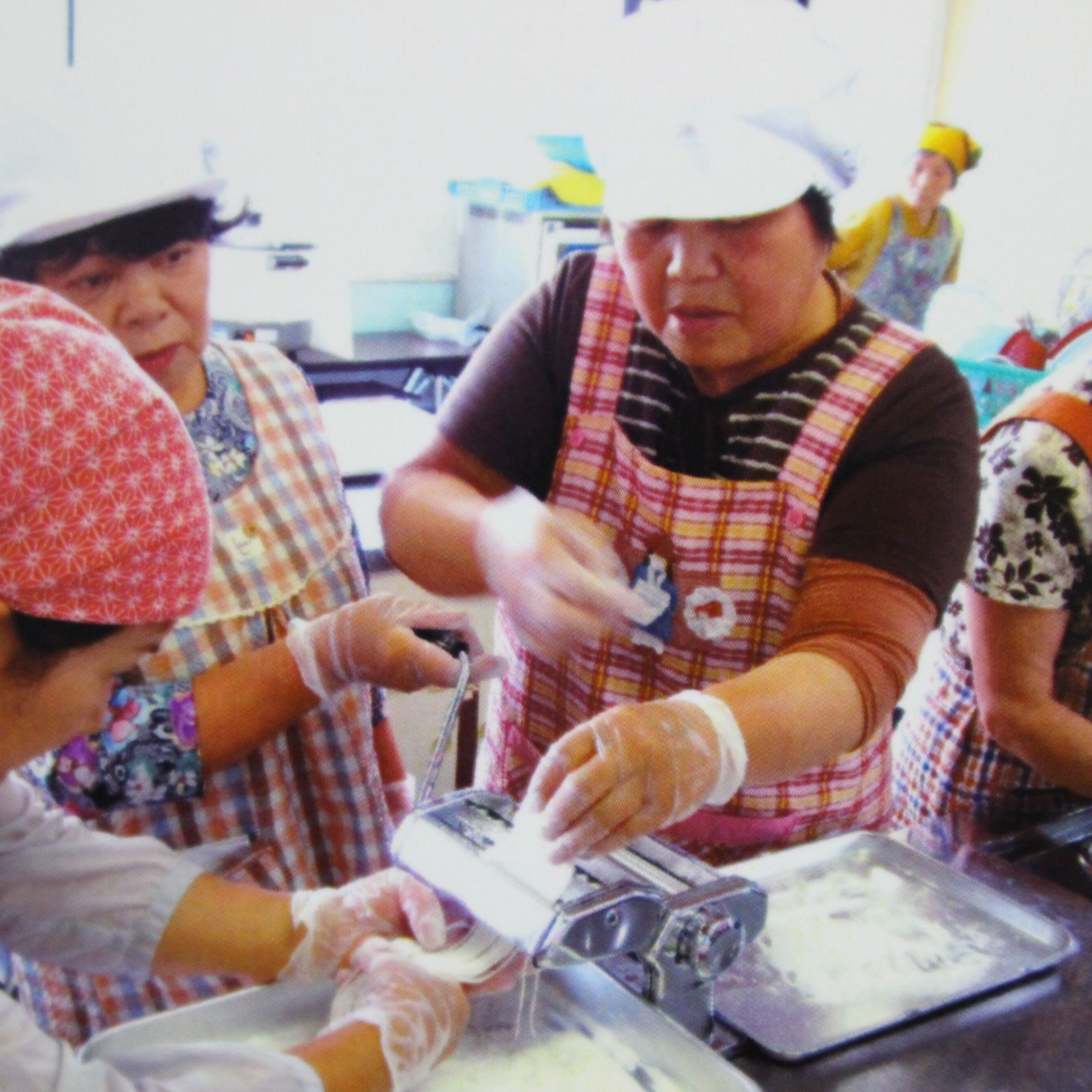 前日に大豆を水に漬けて置き、当日ザルにあげ、フードプロセッサーとミキサーにかけ、袋に入れ絞ります。絞った汁を鍋で温め海水(にがり)を入れて固めます。大豆の香りと味をしっかり感じられるお豆腐です。島のお母さんたちと一緒に作ります。壱岐の話を聞きながら美味しいお豆腐作りを楽しみませんか。